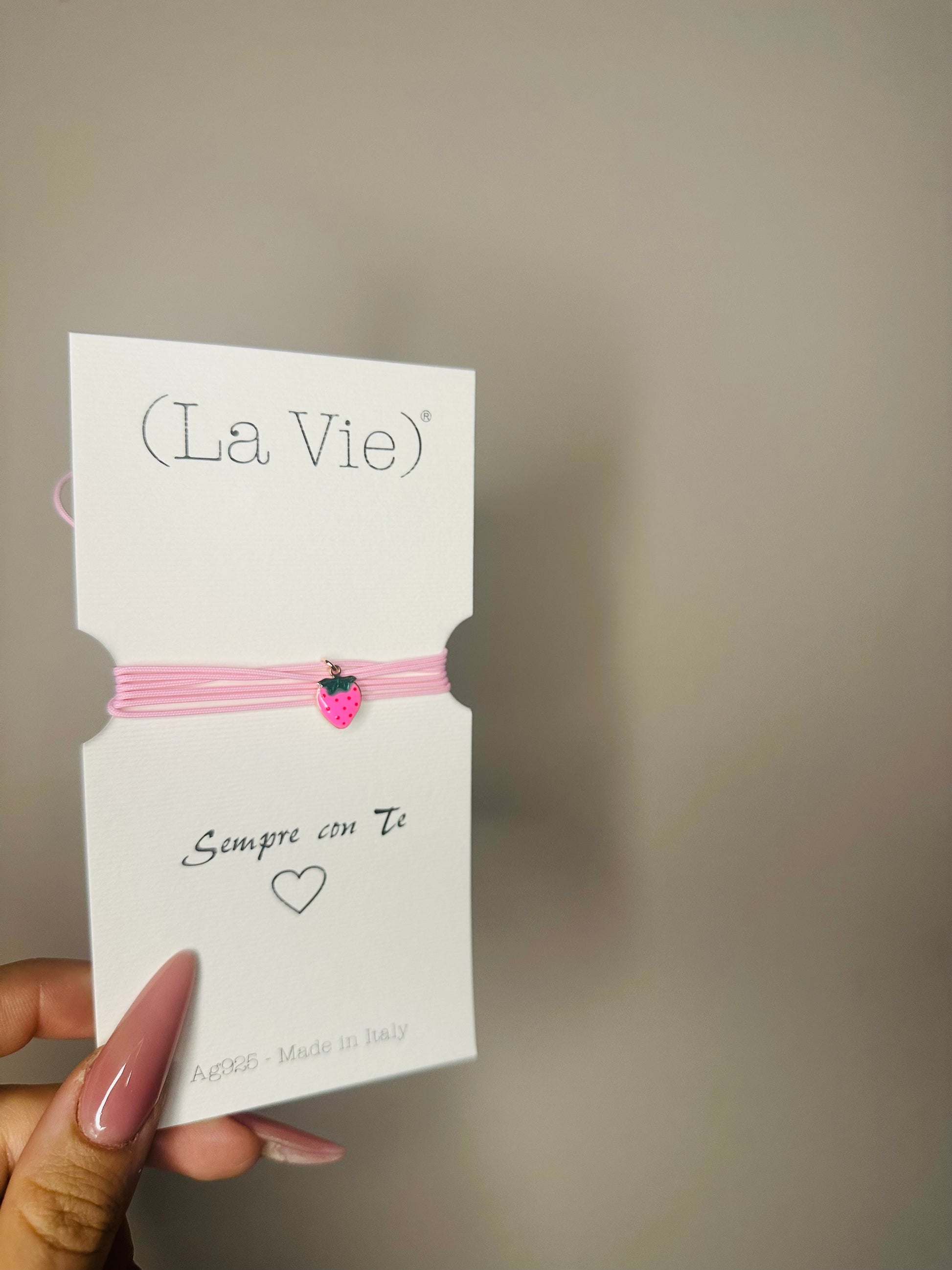 Choker con cordino e charm fragolina in argento925, bagnato in oro rosa 24kt.