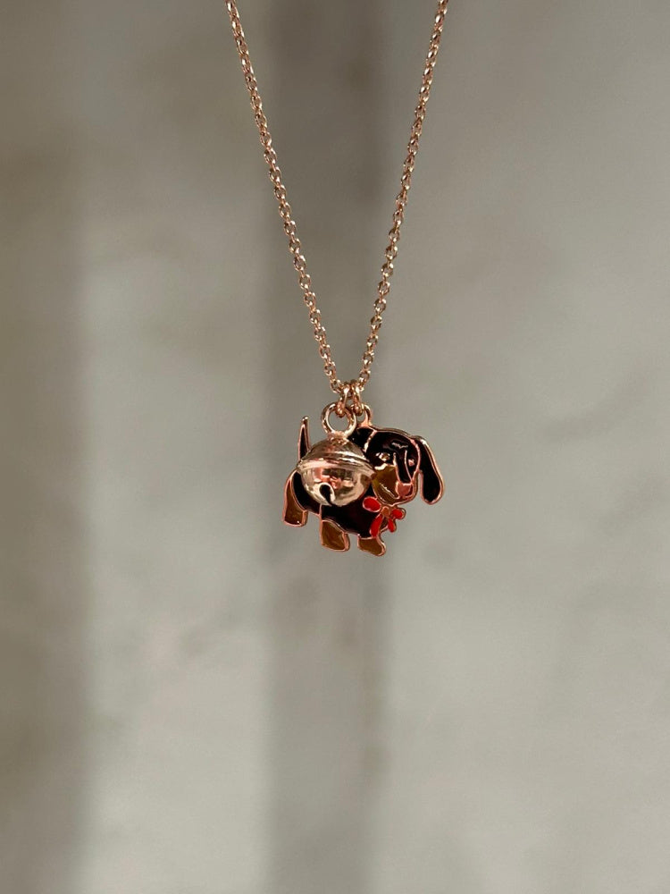 Girocollo catena forzatina con charm bassotto+campanellino.