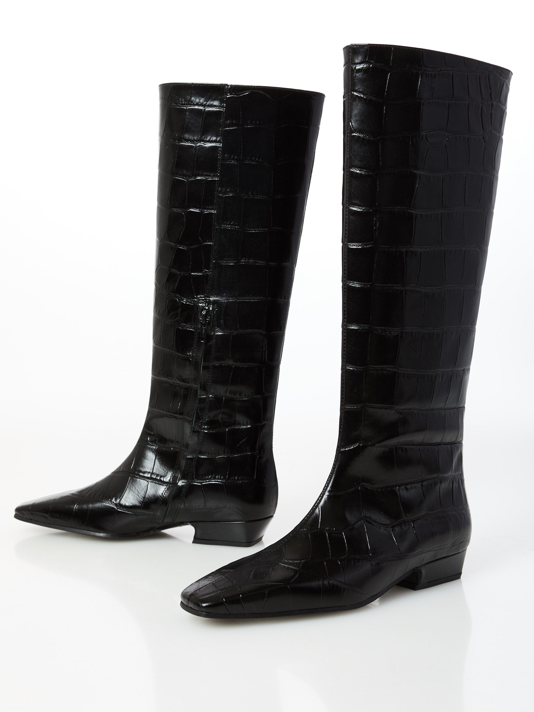 Stivale in pelle con stampa cocco, cerniera interna, tacco 3cm.